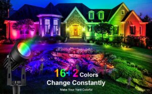 Garden Lights Mains Powered, ECOWHO Garden Spot Lights Coloured Waterproof 20m Extendable Cable IP65 Spike Lights Plug-in Timer Memory Remote for Outdoor Holiday Decor(18w,12v, Cool White&RGB)