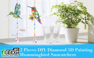 EEEKit DIY Diamond Painting Suncatcher, 2 Pieces Hummingbird 5D DIY Point Drill Diamond Painting Wind Chime,Double Sided Painting Ornaments with Crystal Pendant for Home Garden Decoration Gif