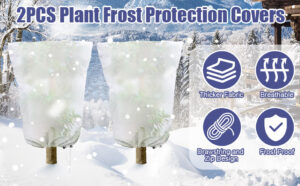 2 Pack Plant Frost Protection Cover, 80x100cm Horticultural Fleece Frost Protection Plant Cover with Zipper Drawstring, Rip Resistant Garden Fleece Jacket Plant Covers for Winte