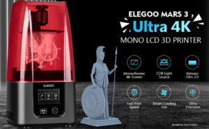 ELEGOO Mars 3 Pro 3D Printer, 4K Mono 6.6 Inch LCD MSLA UV Resin Printer with Air Purifier and Screen Protector, Speedy Printing and High Precision, 5.62×3.5×6.8 Inch Larger Build Volume