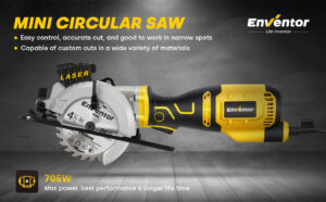 Mini Circular Saw, ENVENTOR 705W 3500RPM Compact Electric Circular Saw with Laser Guide, 6 Blades(115mm), Max Cutting Depth 42.8mm(90°), 28mm(45°), Mini Saw for Wood, Soft Metal, Tile, Plastic Corded