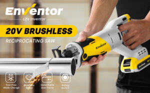 Brushless Reciprocating Saw, ENVENTOR 20V Cordless Reciprocating Saw with 2×2.0Ah Battery, 0-3000RPM Variable Speed Electric Sabre Saw, 5 Blades, 22mm Stroke Length, Ideal for Wood and Metal Cutting