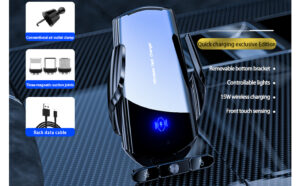 Wireless Car Charger Phone Holder, 15W Fast Charging Smart Auto Clamping Air Vent Cellphone Holder, Wireless Charging, Magnetic Head Charging, USB Charging with Type-C/iOS/Micro USB Port (Silver)