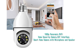 Light Bulb Camera, 1080p Panoramic WiFi Home Security Camera, E27 Interface Smart Home Camera with Microphone and Speaker, Motion Detection, Real- Time Alert, Loop Recording