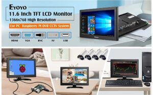 Eyoyo 12 Inch CCTV Monitor, Portable 12 inch HDMI Security Monitor TFT LCD monitor with AV HDMI BNC VGA Input 1366×768 Mini HD Monitor Color Display with Built-in Speake