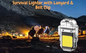 Zactly MODEL AL10 Transparent Electric Lighter Dual Arc Multifunction USB Type-C Rechargeable Waterproof Windproof Dustproof with Led Light, Whistle & Lanyard, Camping, Outdoor Survival Tool (Black)