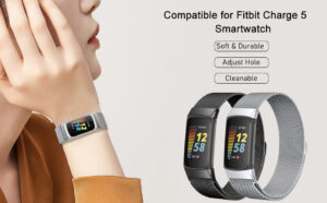 OMEE Metal Strap For Fitbit Charge 5 for Women Men, Stainless Steel Mesh Loop Straps with Magnetic Lock for Fitbit Charge 5 Wristband