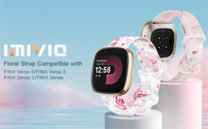 IMIVIO Floral Strap Compatible with Fitbit Versa 4 Straps/Fitbit Versa 3 Straps/Fitbit Sense Straps for Women, Soft Sport Wristband Replacement Band with Secure Silver Buckle, Butterfly