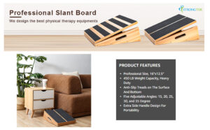 Professional Wooden Slant Board, Adjustable Incline Board and Calf Stretcher, Stretch Board – Extra Side-Handle Design for Portability – 16″ X 12.5″, 5 Positions