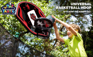 Jumptastic Trampoline Basketball Hoop Universal with Mini Basketball and Pump, Sturdy Easy to Assemble Fit for Curved Pole or Straight Pole