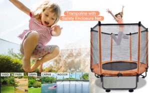Veluoess 55″ Kids Trampoline with Safety Enclosure Net and Pad, Mini Garden Outdoor Trampoline Indoor and Outdoor Exercise Fitness Equipment for Kids 3+ Age
