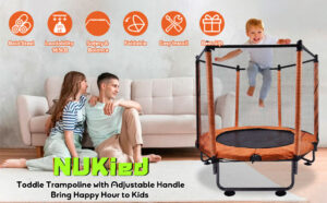 48” Kids Trampoline Foldable Fitness Bouncer for Toddler Children with Safety Enclosure Netting and Anti-collision Foam Jumping and Training Indoor Outdoor Activities For 4-15 Years Old