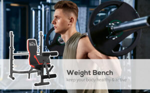 HOMCOM Multifunctional Exercise Set Weight Bench W/Preacher Curl, Strength Exercise Starter Kit for Legs, Arms and Cor Muscles – Red and Black