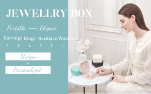 JACHAM Custom Leather Jewelry Box, Personalized Jewelry Travel Case, Customized Jewelry Organizer Box with Name and Birth Flower Month, Mom Birthday Gifts for Women (Blue)