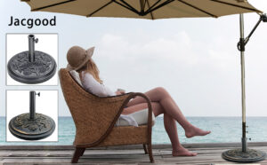 Jacgood Heavy Duty 9kg Garden Parasol Base Floral Design Bronze Finish Cast Iron Effect Base Umbrella Stand Round | 9kg Cast Iron Bronze Flower Floral Design (Black)