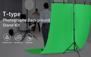 Green Screen Backdrop with Stand 5×6.5ft, Foccalli Photography Backdrop Stand with Chromakey Muslin Background, 5 Backdrop Clips and Sandbag for Streaming Gaming Photoshoot (5×6.5ft/150x200cm)