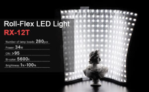 Fomito Falconeyes RX-8T Foldable Roll-Flex LED Light Kit 5600K CRI95 Flexible Cloth Mounting On-Camera Lamp Daylight Splash-Proof for Video Stuido Photography Lighting