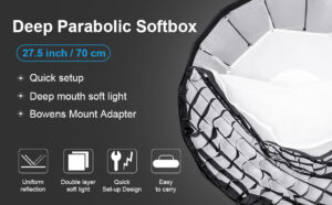 NiceFoto Parabolic Softbox 27.5 inches/ 70cm Professional Quick Set-up Deep Soft Box with Grid and Bowen Mount for Studio Flash LED Light Photography