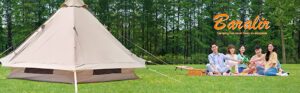 Baralir Bell Tent, Four Seasons Teepee Tent Waterproof Oxford Cloth 4 Person Glamping Tent Large Family Outdoor Camping Tipi Tents