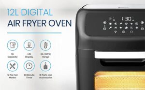 Pro Breeze 12L Air Fryer Oven 1800W with Rotisserie, Dehydrator, Digital Display, Timer, 12 Pre-Set Modes and Fully Adjustable Temperature Control for Healthy Oil Free & Low-Fat Cooking