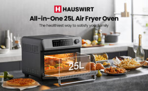 HAUSWIRT Air Fryer Oven 25L Extra Large – Countertop Convection Oven with Rotisserie/Dehydrator/Frying, 45 Recipes & 7 Accessories, 1600W, K5pro