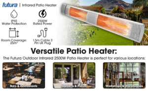 FUTURA Deluxe Wall Mounted Electric Infrared Outdoor Garden Patio, Bathroom Heater 2500W, Waterproof, Remote Control Included (2500W Wall Mounted)