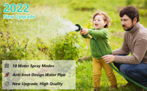 Spauood Expandable Garden Water Hose Pipe 25ft,10 Function Spray Nozzle-Flexible Expanding Water Hose with 3/4″, 1/2″ Solid Brass Fittings, Perfect for Gardening, Watering and Washing (Black-Green)