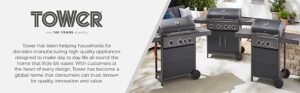 Tower T978502 Stealth 4000 Four Burner Porcelain Gas BBQ with Side Burner, Precision Thermometer and Cabinets, Black