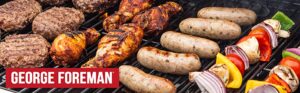 George Foreman GFGBBQ3BW 3 Burner Gas Grill with Wood Effect Shelves