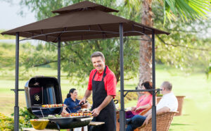 ABCCANOPY BBQ Grill Gazebo Double Tiered Outdoor Gazebo Canopy with LED Light (Burgundy)