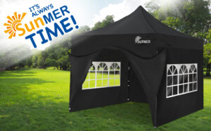 SUNMER 3x3M Pop-Up Gazebo with 4 Sides – Fully Waterproof (420D Oxford PVC) with Heavy Duty Rust-Resistant Steel Frame – Wheeled Carry Bag Included for Easy Transportation – Black