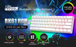 RK ROYAL KLUDGE RK61 Wired 60% Mechanical Gaming Keyboard RGB Backlit Ultra-Compact Hot-Swappable Red Switch White