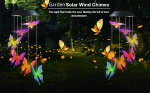 Gerhannery LED Solar Wind Chime Light Spiral Spinner Color Changing Garden Lamp Waterproof Outdoor Decorative Romantic for Patio Yard Garden with Hook (Butterfly)