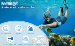Lealinga Snorkel Set Adults With Snorkel And Fins, Unisex Diving Set Diving Goggles, Snorkel, Adjustable Diving Fins In Different Sizes, Swimming Set Swimming Fins For Adults Childre