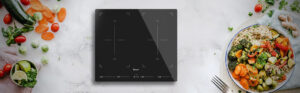 GIONIEN Plug-in Induction Hob 13 Amp 3kW, 60cm Integrated Electric Cooktop with Bridge Zone, 4 Cooking Rings Cooker GIT470SP [Energy Class A+]
