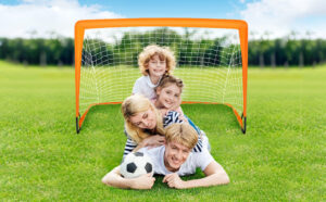 ezmove Football Goal Portable Football Net Goals Post for Kids Garden Training Equipment Gifts, Boys Indoor Outdoor Toys 2 in 1,80 * 120 * 80cm