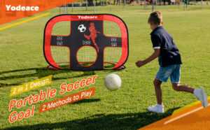 Yodeace Football Goal, Portable Soccer Goal 2 in 1 Design Foldable Children's Soccer Goal Net with Carry Bag for Kids Backyard Lawn Indoor Games and Training 47 x 31 x 31 Inch