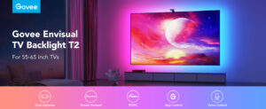 Govee Envisual LED TV Backlight T2 with Dual Cameras, DreamView RGBIC Wi-Fi TV Lights for 55-65 inch TVs, Double TV Light Beads, Adapts to Ultra-Thin TVs, Smart App Control, Music Sync