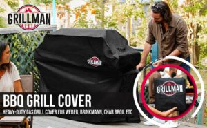 Grillman BBQ Grill Cover Cover fits Weber, Brinkmann, Char Broil, Outback & more – Large Barbeque Cover Waterproof, Rip-Proof & UV Resistant Heavy Duty Barbecue Cover (152 x 71 x 112 cm), Grey