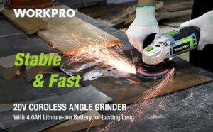 WORKPRO 20V Cordless Angle Grinder 125mm, 7500rpm, 4.0Ah Lithium-ion Battery and Fast Charger, 5PCS Cutting Wheels Included
