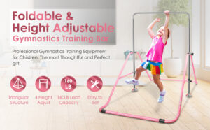 Horizontal Bar Gymnastics Kids Garden Home Reck Stretching Folding Value Gift Set,Expandable Gym Training Bar Equipment Adjustable Height for Boys Girls Color Pink Blue fit Fitness Outdoor Indooo