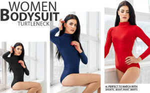 Style Lockers® New Womens Polo Turtle Neck Ballet Dance Bodysuit – Plain Solid Colour Stretch Ladies Long Sleeve Leotard Gymnastic Top UK Plus Size 8-26