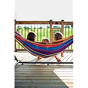 Vivere Double Cotton Hammock with Space-Saving Steel Stand Including Carrying Bag, Rio Night, Salsa