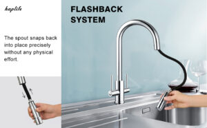 Kitchen Taps with Pull Out Spray, Hapilife Kitchen Mixer Tap Dual Lever High Arc Taps for Kitchen Sink with 360° Swivel Spout Pull Down Sprayer Twin Lever, Chrome