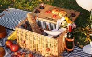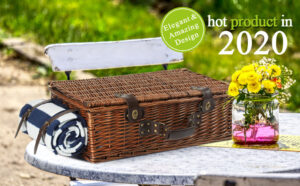 HappyPicnic Fitted Willow Picnic Basket with Deluxe Service