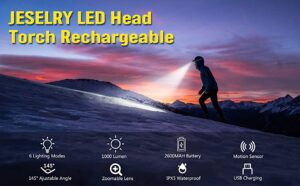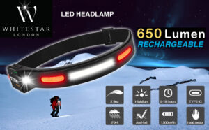 Head Torch Rechargeable – 5 Mode 650 Lumens Red COB Led Running Headtorch – Lightweight Waterproof USB Headlamp – 230° Illumination Wide Beam Sensor Headlight for Hiking Camping