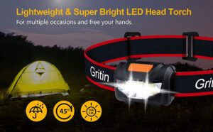 The Lost Peak Rechargeable Head Torch – 3 Lights & 4 Modes – 6000 Lumen Super Bright LEDs – IPX5 Waterproof – For Running, Camping, Fishing, Cycling, Hiking & Much More