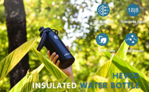 64oz Water Bottle Stainless Steel, Girls Boys Water Bottle Double Walled Vacuum Insulated Water Bottles, BPA Free Friendly Bottle with Leak Proof Flex Cap with Strap,Wide Mouth,12H Hot & 24H Cold
