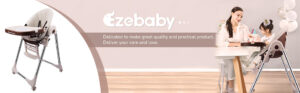 Ezebaby High Chairs for Babies and Toddlers, Baby Chairs, Foldable Reclining Highchair with Food Tray, Wheels, Safety Harness, Footrest, 6 Months to 6 Years Old, Maximum 50kg (Beige)