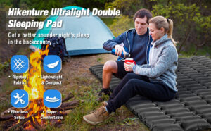 HIKENTURE Inflatable Double Camping Mat with Foot Pump, Ultralight Air Camp Mattress 120cm 140cm for 2 Person, Compact and Moistureproof Sleeping Mat for Hiking, Backpacking, Hammock, Te